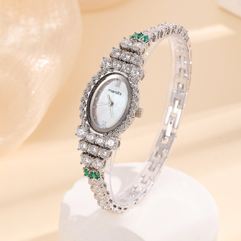 أعلى الساعات الميكانيكية النسائية الفاخرة المرصعة بالماس مع حزام الفولاذ المقاوم للصدأ 904L والاتصال الهاتفي الأبيض.