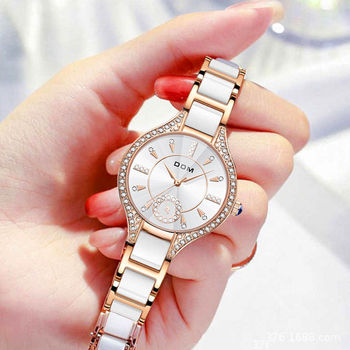 Bracelet en céramique et acier Love Heart Montre à quartz pour femme Or rose Montre simple et élégante
