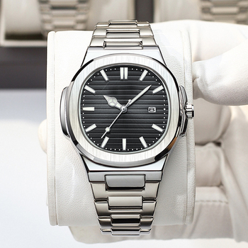นาฬิกากลไกอัตโนมัติสำหรับผู้ชายสแตนเลสสตีลแซฟไฟร์คริสตัลนาฬิกาข้อมือกีฬากันน้ำเรืองแสง